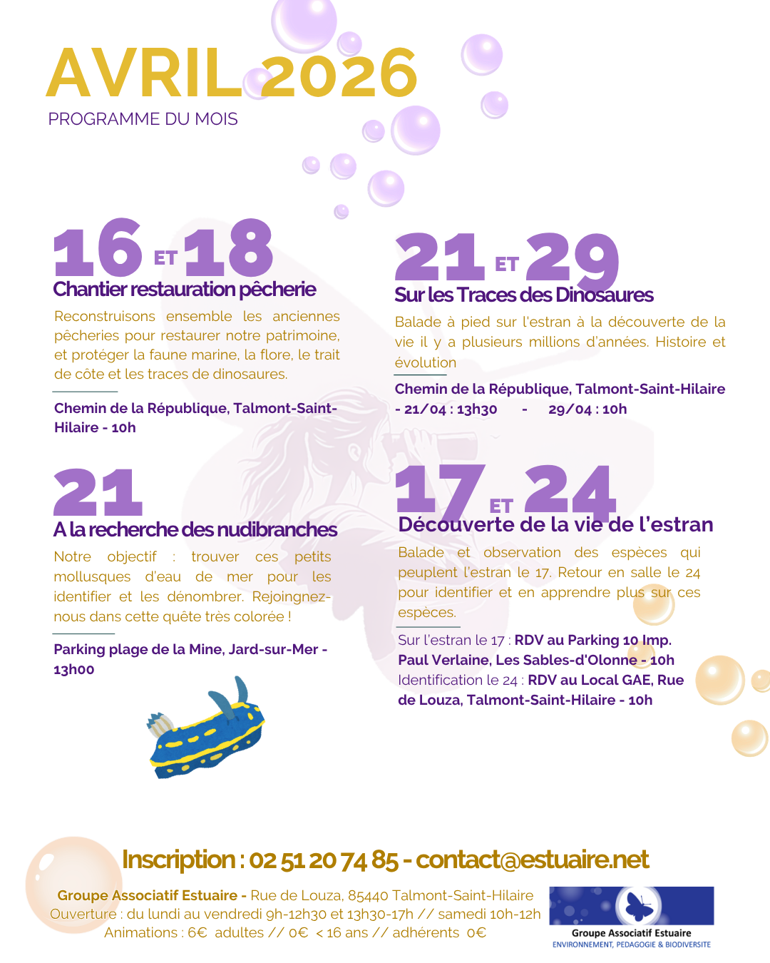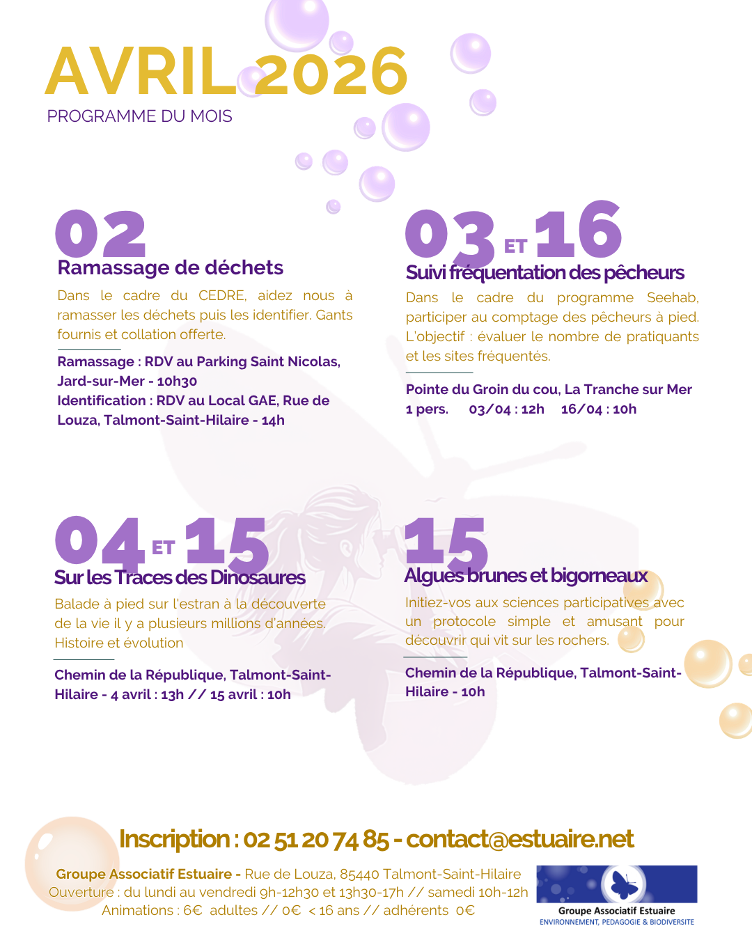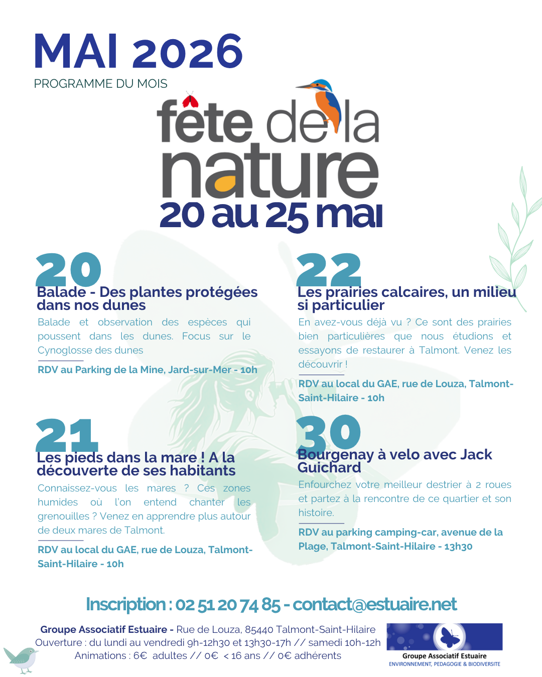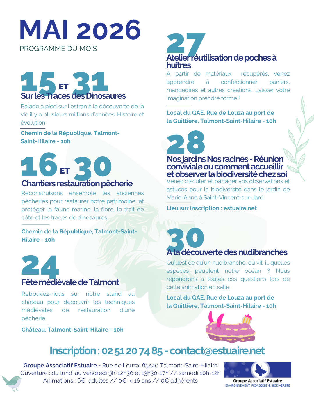 Pour vous inscrire, rien de plus simple ! Un mail à contact@estuaire.net ou un coup de téléphone au 02.51.20.74.85.