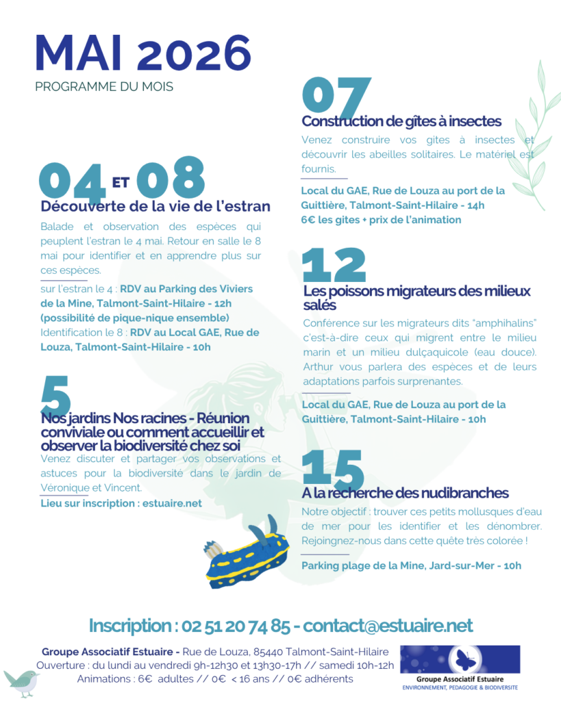 Ces rendez-vous sont pensés pour les adhérents d’Estuaire, mais ils restent ouverts au public désireux de venir nous rencontrer.